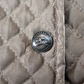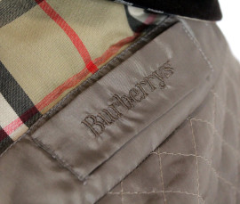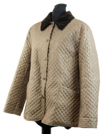 Burberry, giacca trapuntata beige con colletto in corduroy, foderatura interna in tartan, taglia EU 46, larghezza spalle cm 47, lunghezza cm 75, lunghezza manica cm 62, (lievi segni di utilizzo).