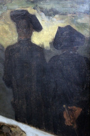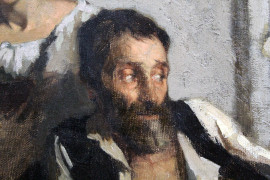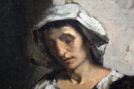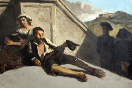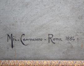 L'elemosina, olio su tela, cm 66x88, datato Roma 1884, entro cornice.