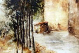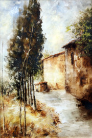 Casolare toscano, olio su tela, cm 30x40, datato 1975, entro cornice.