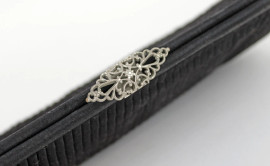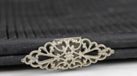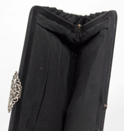 Clutch nera in tessuto plissettato, misure cm 12x28x2, (segni di utilizzo).