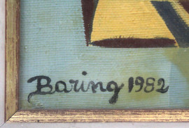 Composizione cubista, olio su tela, cm 50x40, firmato Baring 1982, entro cornice.