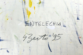 Composizione informale, olio su carta, cm 66x48,5, firmato e datato a tergo.