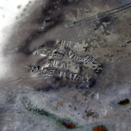 Conchiglia in metallo argentato, XX secolo, cm 18x38x21, (ammaccature)