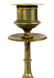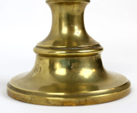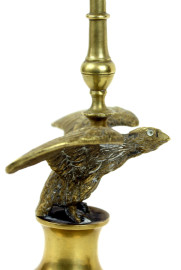 Coppia di candelieri in ottone con fusti sorretti da aquile, cm h 21,5.