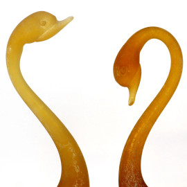 Coppia di cigni in vetro di Murano, cm h 24, marcati V.Nason&C., XX secolo, (segni del tempo).