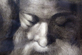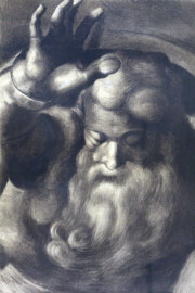 Da Michelangelo Buonarroti, Dio che separa le acque, carboncino su cartoncino, cm 69x49, XX secolo, entro cornice