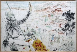 Don Chisciotte, grafica a colori, cm. 45x53, entro cornice.