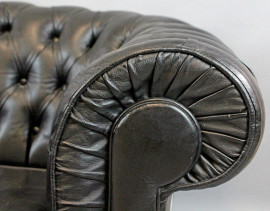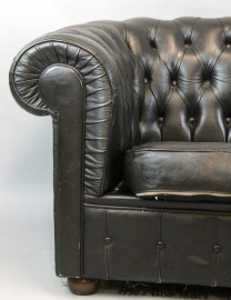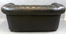 Divano tipo Chester in ecopelle color nero, cm h 69x163x80, (difetti)