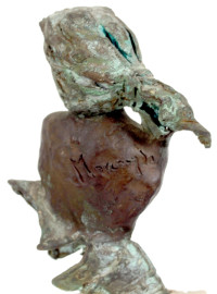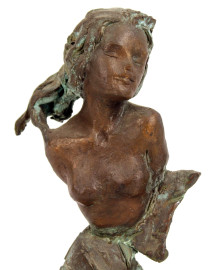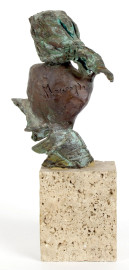 Figura femminile in bronzo, altezza cm. 17, firma al retro, base in travertino (altezza totale cm.27)