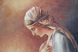 Figura in preghiera, acquarello su carta, cm 23,5x17,5, firmato, entro cornice.