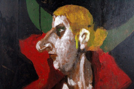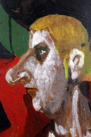 Figura, olio su tavola, cm 54x27,5, firmato a tergo, (difetti)