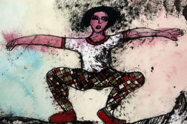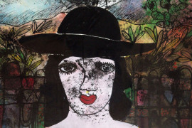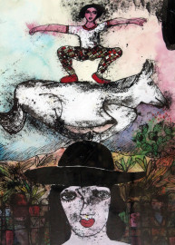 Figure e cavallo, tecnica mista su carta, cm 60x50, firmato, entro cornice
