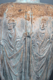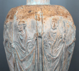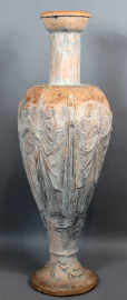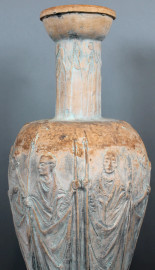 Grande vaso in terracotta, con decoro a rilievo raffigurante togati, altezza cm.105, (difetti).