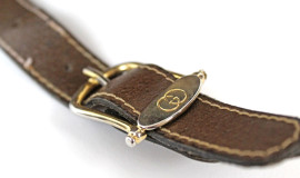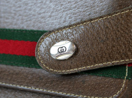 Gucci, borsa a tracolla anni '70, in pelle color marrone, cm 20x30x12, n. di serie 01204485, (segni di utilizzo).
