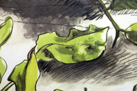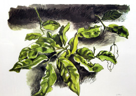 Foglie, litografia a colori, cm 57,5x78, prova d'autore, con allegato al retro certificato Editrice Diffusione Arte, entro cornice.