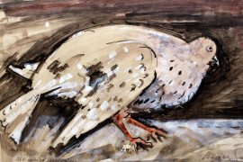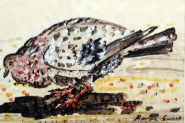 Coppia di acquarelli su carta raffiguranti volatili, cm 27x24, entro cornice