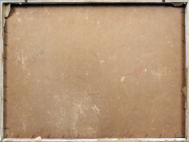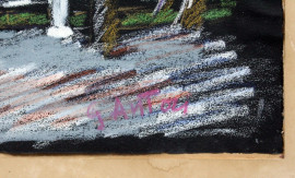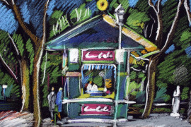 Il chiosco, tecnica mista su cartoncino, cm. 33x47, firmato, entro cornice