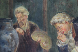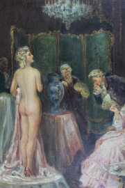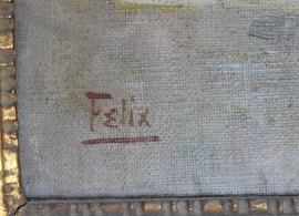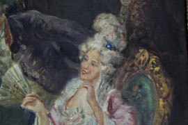 Interno settecentesco, olio su tela, cm 59,5x49,5, firmato Felix, entro cornice
