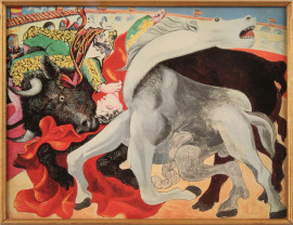 La corrida, stampa a colori, cm. 30x39, entro cornice.