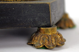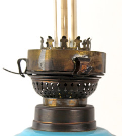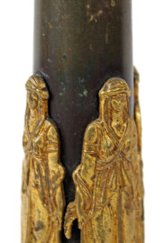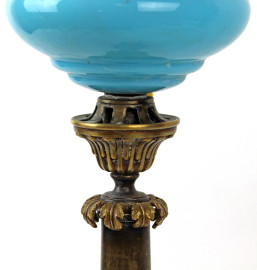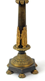 Lampada da tavolo in bronzo dorato, fusto a colonna poggiante su base esagonale, cm h 53, inizi XX secolo, (difetti).