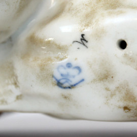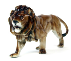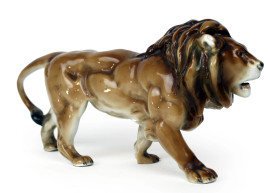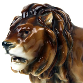 Leone, scultura in porcellana, marcata, XX secolo, altezza cm 17, lunghezza cm 36