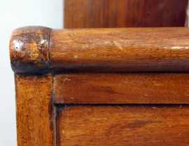 Letto a barca in mogano e piuma di mogano, ad una piazza, cm h 93x200x100, XX secolo, (segni del tempo).
