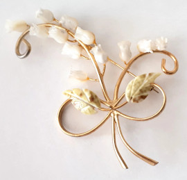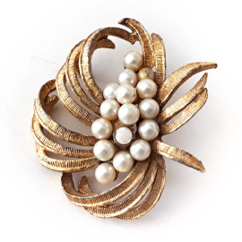 Lotto composto da una spilla vintage in metallo dorato e perle e una spilla vintage in metallo dorato e motivi floreali in pietra dura