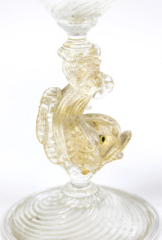 Lotto di due calici in vetro di Murano, in vetro trasparente con particolari dorati, altezza max cm. 23, XX secolo