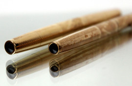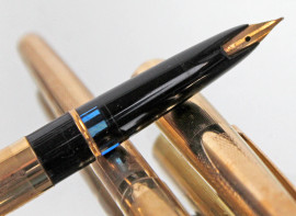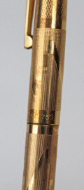 Lotto di due penne Lalex stilografica e biro, laminate in oro 750, cm 12,5.