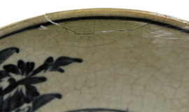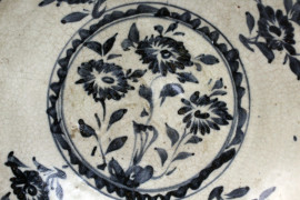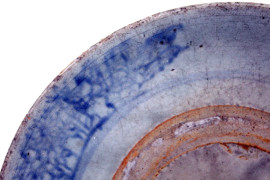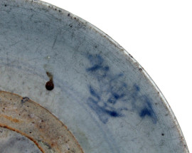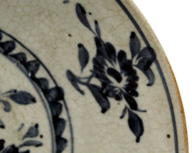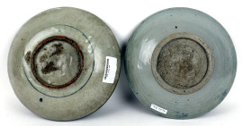 Lotto di due piatti in ceramica smaltata bianco e blu, diametro cm 26, arte orientale, XX secolo, (difetti)