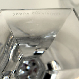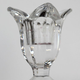 Lotto di tre oggetti in cristallo, composto da una coppia di portacandele ed un candeliere a tre fiamme, altezza max cm 29, marchio alla base, XX secolo, (difetti e restauri).