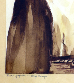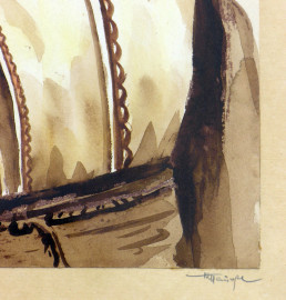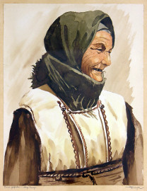 Maestro sardo del Novecento, Ritratto di anziana, acquarello su carta, cm 25x20, firmato e titolato, con cornice
