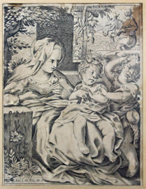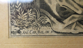 Maternità, incisione datata 1587 e firmata Ani.Car.Bol.In.F., cm 15 x 12, entro cornice.