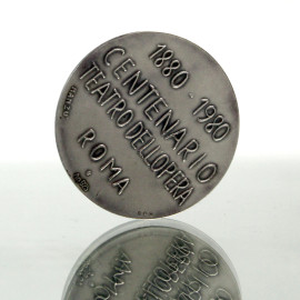 Medaglia in argento 925 commemorativa del centenario del Teatro dell'Opera di Roma (1880-1980), diam. cm 4.
