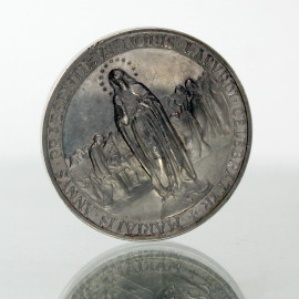 Medaglia papale in argento 986 raffigurante papa Giovanni XXIII, al dritto "IOANNESS XXIII PONTIFEX MAXIMVS AN I", al rovescio "MARIALIS ANNUS PRAEESENTIBVS NOBIS LAPVRDI CELEBRATVR +", diam.cm 4,5.