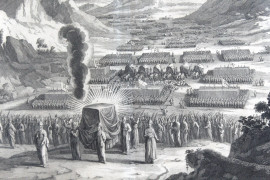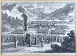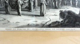 Ordre, et marche des israélites dans le désert, incisione, cm. 32x44, XVIII secolo, entro cornice, (piegature sulla carta).