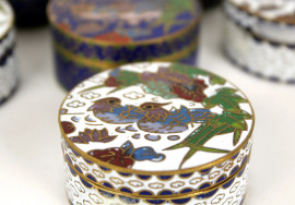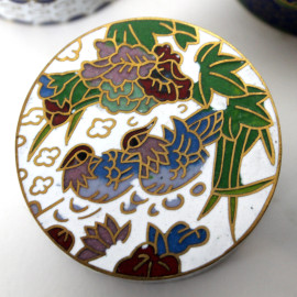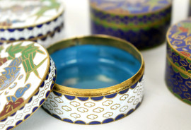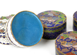 Otto scatoline a smalti cloisonnè, a decoro di fiori e volatili, inizi XX secolo