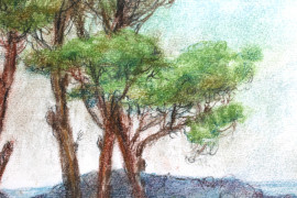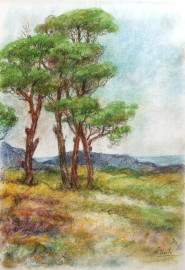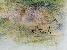 Paesaggio con alberi, pastello su carta, cm 48x33, firmato Piccolo, entro cornice