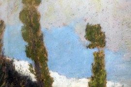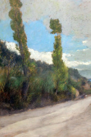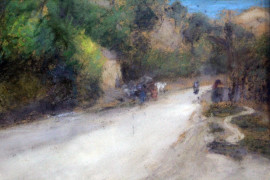 Paesaggio con strada e figure, pastello su carta, cm 65x51, firmato, entro cornice