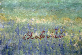 Paesaggio montano, olio su tavola, cm. 35x45,5, firmato.