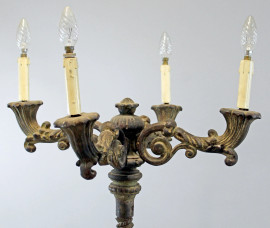 Piantana in ghisa a quattro luci, base in legno, XX secolo, cm h 166