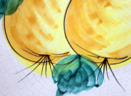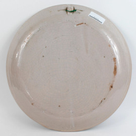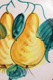 Piatto da muro in ceramica policroma, decorato con pere e motivi vegetali, diametro cm. 45, XX secolo