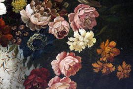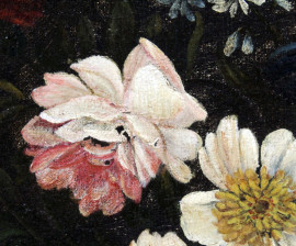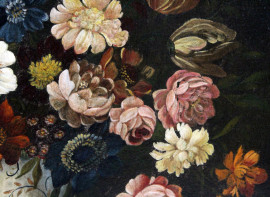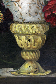 Pittore del XIX secolo, Natura morta, olio su tela applicata su cartone, cm 64x87,5, entro cornice.