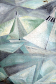 Regata, olio su tela, cm 60,5x46, XX secolo, entro cornice, (difetti).