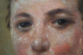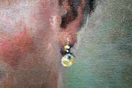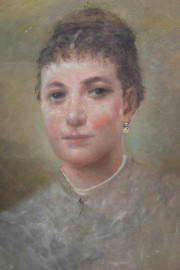 Ritratto di donna, olio su tela, cm 64x49, ad assetto ovale, inizi XX secolo, entro cornice