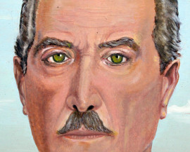Ritratto d'uomo con libro, olio su tavola, cm 50x38, XX secolo, entro cornice.