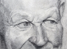 Ritratto d'uomo con papillon, tecnica mista su carta, cm 47x37, firmato, entro cornice.