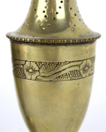 Sale e pepe in metallo dorato, altezza cm. 15,5, inizi XX secolo.