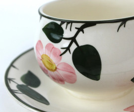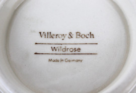 Salsiera Villeroy-Boch in porcellana a decoro di fiori, altezza cm.9, diametro cm.20, XX secolo.