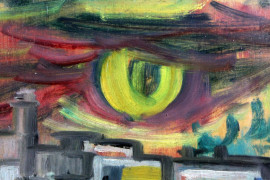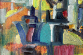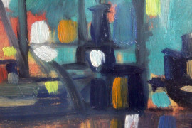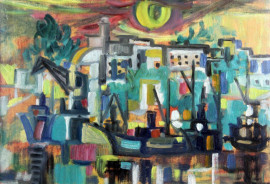 Scorcio di porto, olio su compensato, cm. 40x49, entro cornice.